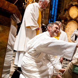 Am Gründonnerstag gedenken wir Christen des letzten Abendmahls. Die Gottesdienste an diesem Tag sind oft mit einer symbolischen Fußwaschung verbunden – wir waren mit der Kamera im Stephansdom dabei, unter der Leitung von Apostolischem Administrator Josef Grünwidl.