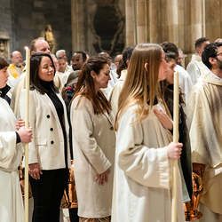 Die Weihe der Heiligen Öle in der Chrisammesse versammelt zu Beginn der Karwoche Priester, Diakone und Gläubige der Diözesen im Stephansdom. Die Priester und Diakone erneuern dabei ihr Versprechen für den Dienst in der Kirche, während die anwesenden Gläubigen die Weihe der Heiligen Öle mitfeiern. Diese Öle werden während des Jahres in den Pfarreien bei Taufen, Firmungen und Krankensalbungen verwendet.